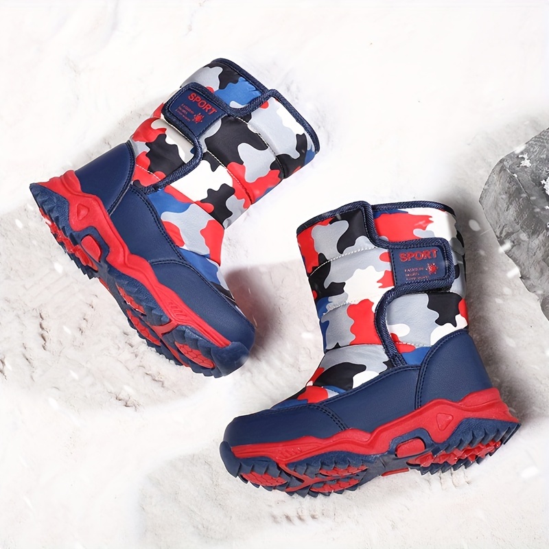 Casual Comfortable Camouflage Snow Boots With Hook And Loop Fastener For Boys, Waterproof Soft Warm Plus Fleece Boots For Outdoor Walking Hiking, Winter