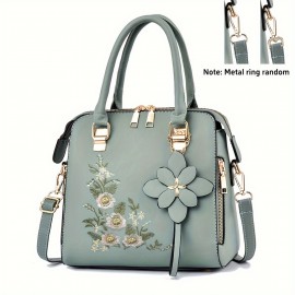 Flower Embroidery Handbags, Fashion Color Contrast Crossbody Bag, Women's Stitching Satchel Purses