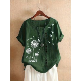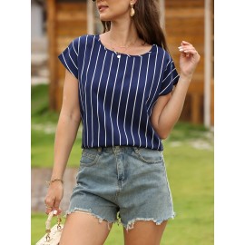 Geometric Print Crew Neck Blouse, Casual Short Sleeve Blouse For Spring & Summer, Women's Clothing