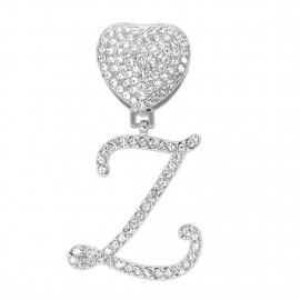 A Silver Initial Letter Pendant Necklace With Alphabet Pendant, Miami Cuban Chain Necklace Style Hip-hop Crystal Letter Chain With Pendant Jewelry Gift