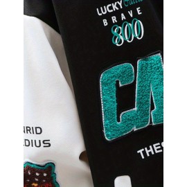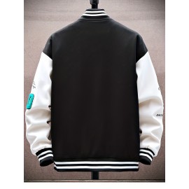 Letter V Print Varsity Jacket, Men's Casual Baseball Jacket Coat Regular Fit College Hipster Windbreaker For Winter Fall