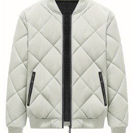 Warm Fleece Thickened Jacket, Men's Casual Baseball Collar Zip Up Jacket Coat For Fall Winter