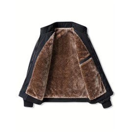 Men's Warm Fleece Jacket With Zipper Pockets, Casual Stand Collar Jacket For Fall Winter