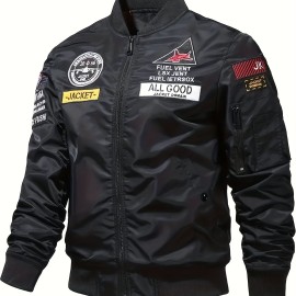 Men's Slim Fit Zip Up Jacket, Casual Windproof Motorcycle Jacket For Spring And Autumn