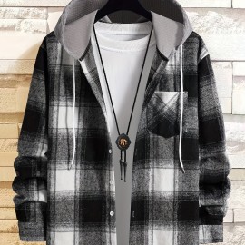 Plaid Shirt Coat For Men Long Sleeve Casual Regular Fit Button Up Hooded Shirts Jacket
