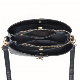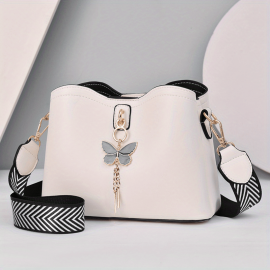 Butterfly Decor Bucket Bag, Geometric Strap Crossbody Bag, Women's Faux Leather Shoulder Bag (9.1*7.1*4.3) Inch