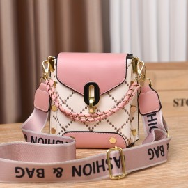Mini Studded Decor Crossbody Bag, Argyle Embroidery Mobile Phone Purse, Trendy Chain Decor Handbag For Women