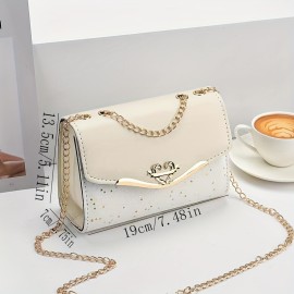 Glitter Sequins Crossbody Bag, Heart Decor Shoulder Bag, Fashion Square Purse With Chain For Women