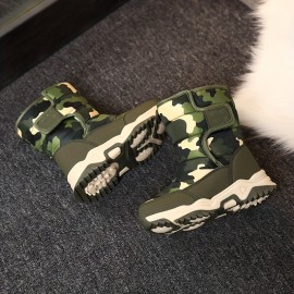 Casual Comfortable Camouflage Snow Boots With Hook And Loop Fastener For Boys, Waterproof Soft Warm Plus Fleece Boots For Outdoor Walking Hiking, Winter