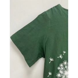Dandelion Print Blouse, Casual Crew Neck Short Sleeve Blouse For Spring & Summer, Women's Clothing