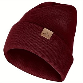Merino Wool Warm Beanie Label Decor Unisex Knit Hat Double Layer Windproof Skull Cap Elastic Beanies Ski Hats For Women & Men Autumn Winter
