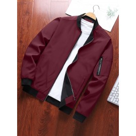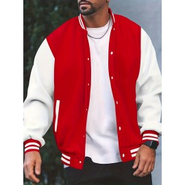 Men's Color Block Bomber Jacket, Casual Baseball Collar Varsity Jacket For Spring Fall