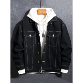 Men's Retro Denim Jacket, Casual Street Style Multi Pocket Denim Jacket