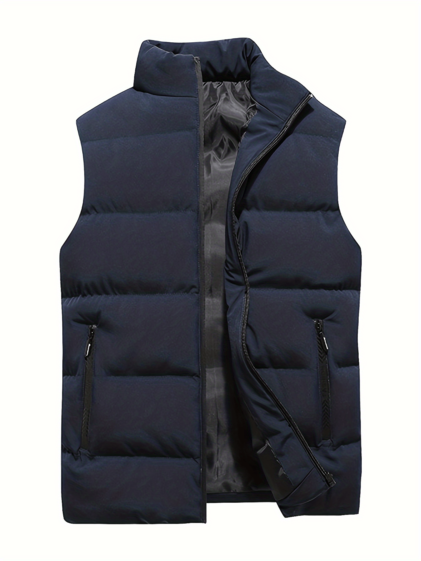 Warm Winter Vest, Men's Casual Zipper Pockets Stand Collar Zip Up Cotton Padded Vest For Fall Winter