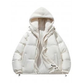 Warm Fleece Hooded Winter Jacket, Men's Casual Cotton Padded Coat For Fall Winter