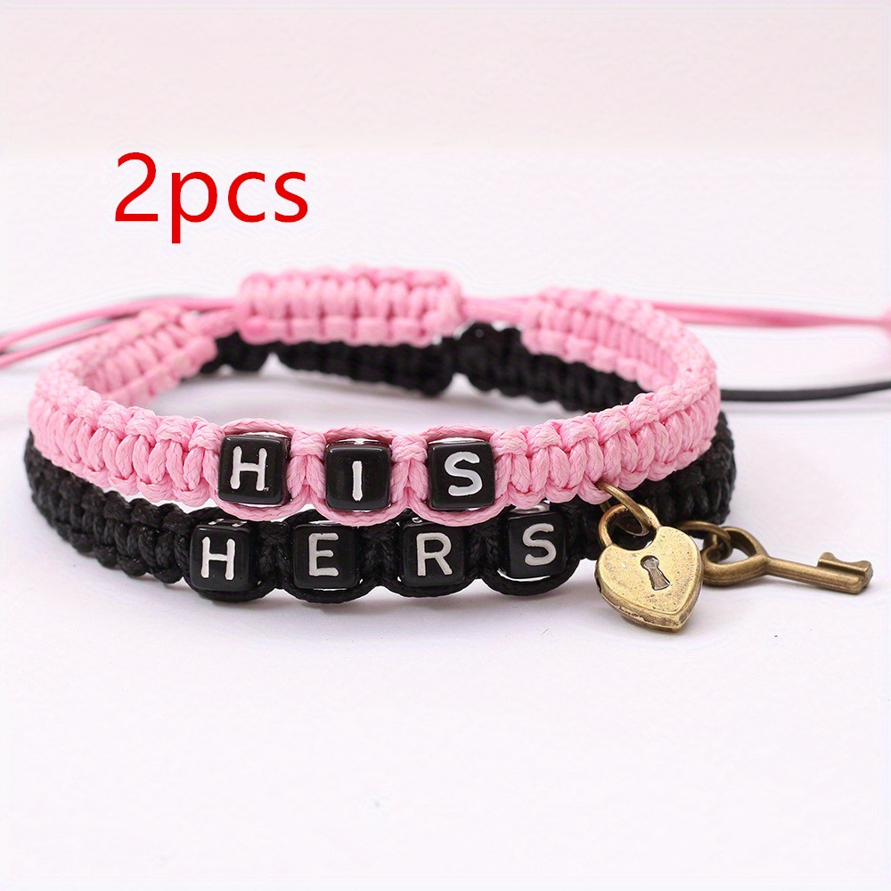 2pcs HIS HERS Couple Bracelet, Couple Lover's Pendant Woven Rope Bracelet For Men Women
