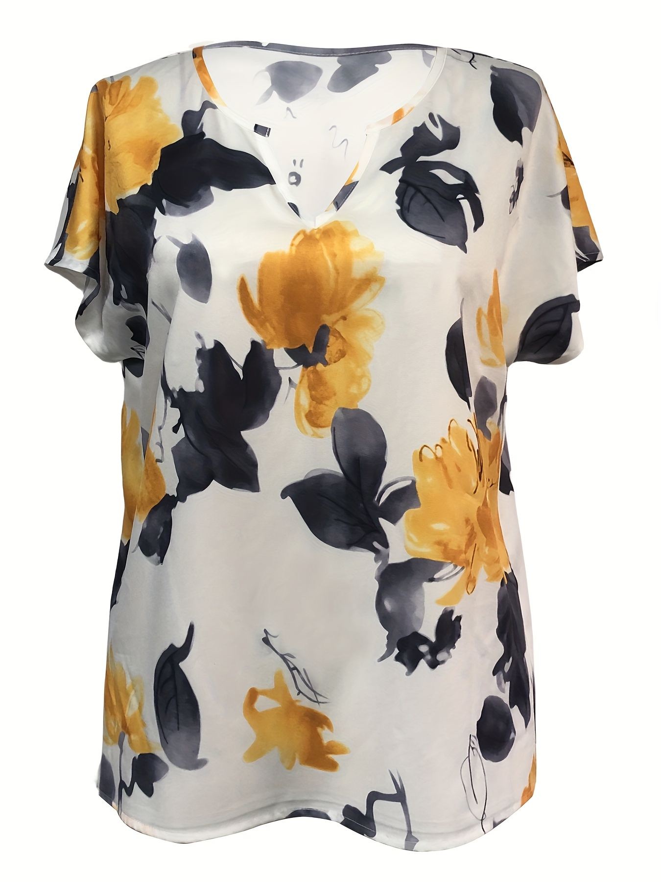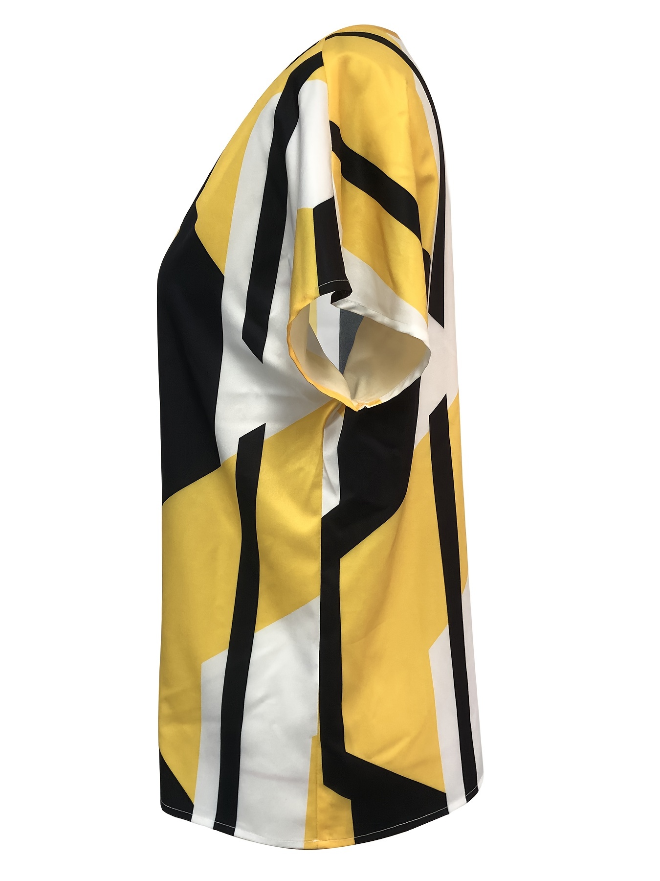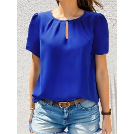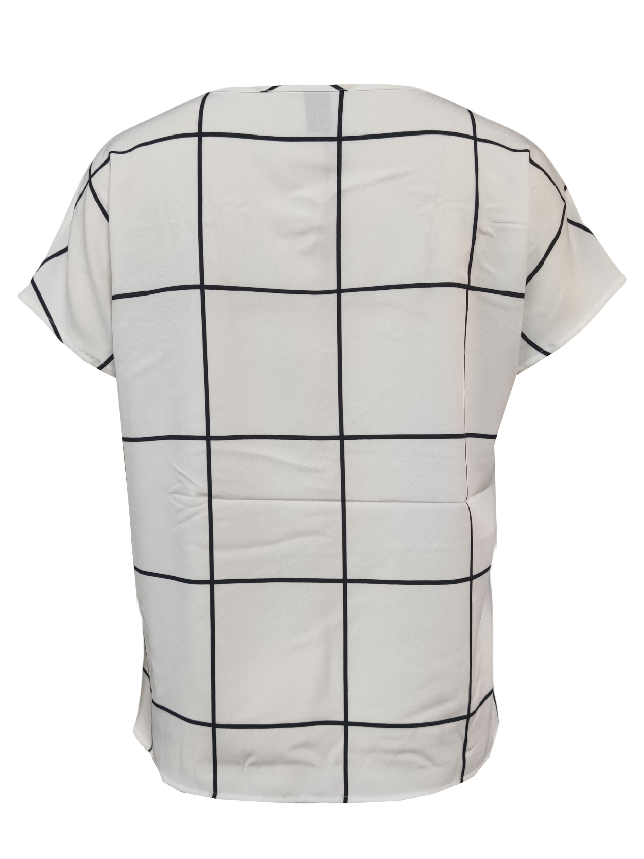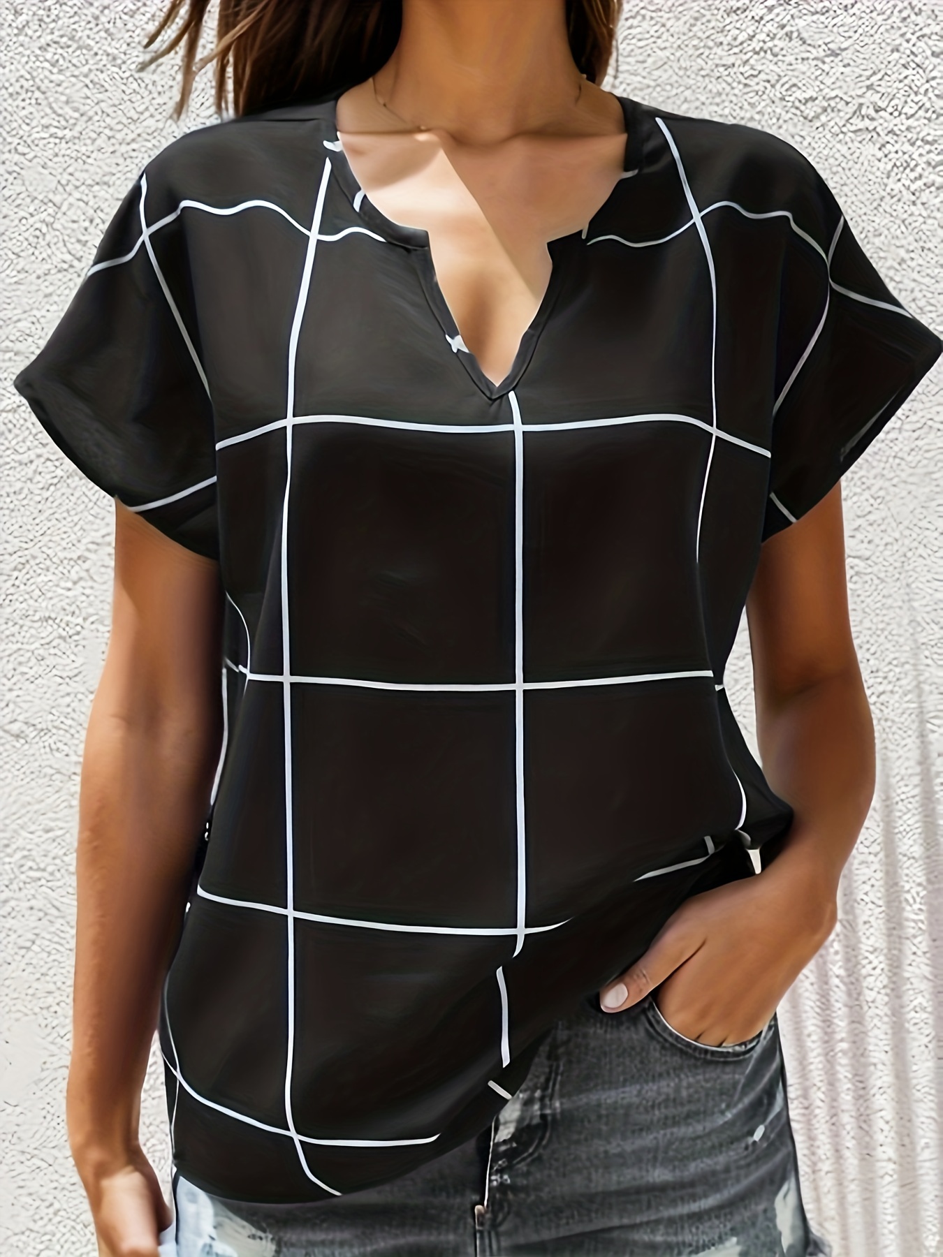 Plaid Notched Neck Blouse, Casual Short Sleeve Blouse For Spring & Summer, Women's Clothing