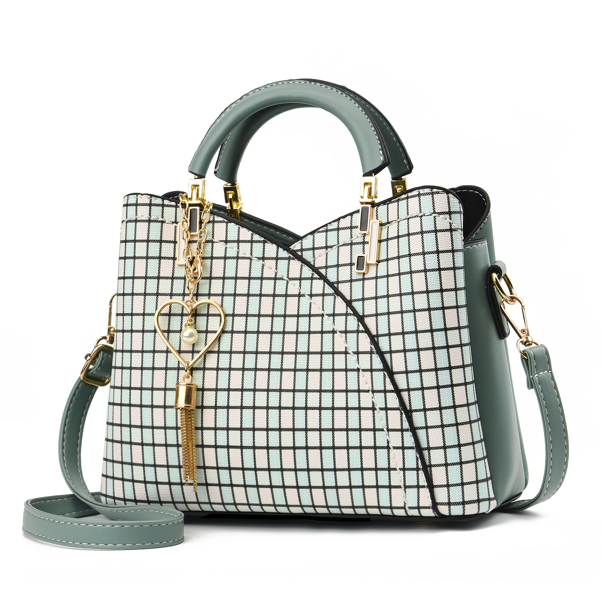 Plaid Pattern Handbag For Women, Crossbody Bag With Tassel Pendant, Fashion Top Handle Shoulder Purse