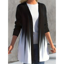 Plus Size Casual Cardigan, Women's Plus Solid Bat Sleeve Lapel Collar Medium Stretch Oversized Cardigan
