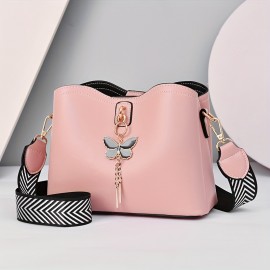 Retro Style Bucket Crossbody Bag, Boho Style Shoulder Bag, Faux Leather Purse With Ethnic Strap