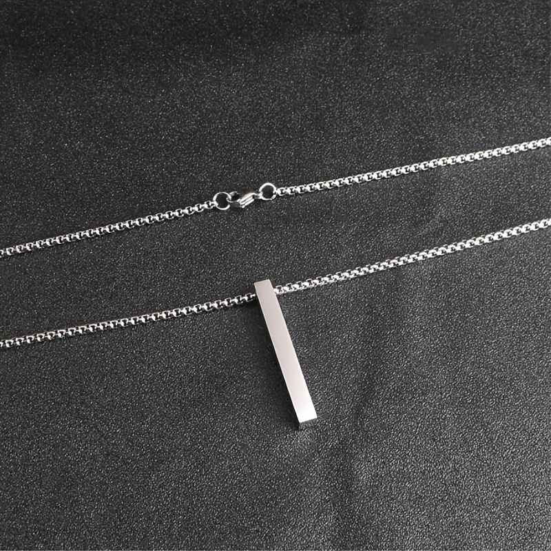 Stainless Steel Rectangle Bar Pendant Necklace Men's Hip Hop Versatile Sweater Chain Accessory