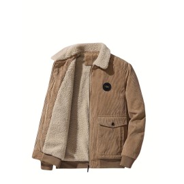 Warm Fleece Thickened Jacket, Men's Casual Baseball Collar Zip Up Jacket Coat For Fall Winter