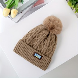 Winter Warm Beanie With Pom Ribbed Beanies Classic Label Patch Elastic Knit Hats Cuffed Skull Cap Coldproof Ski Hat For Women