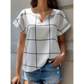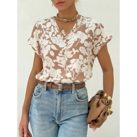 Contrast Lace Cold Shoulder Blouse, Elegant V Neck Solid Short Sleeve Blouse, Women's Clothing