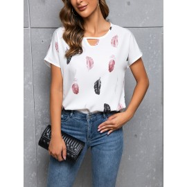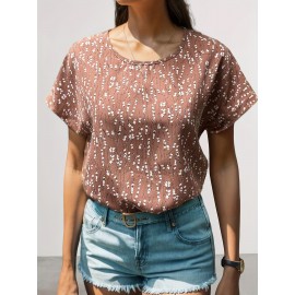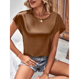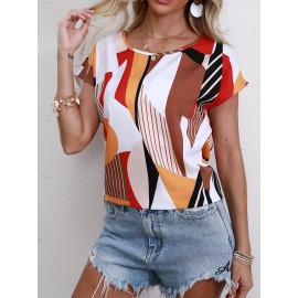 Striped Print Blouse, Casual Crew Neck Short Sleeve Simple Blouse, Women's Clothing
