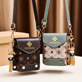 Butterfly Decor Bucket Bag, Geometric Strap Crossbody Bag, Women's Faux Leather Shoulder Bag (9.1*7.1*4.3) Inch