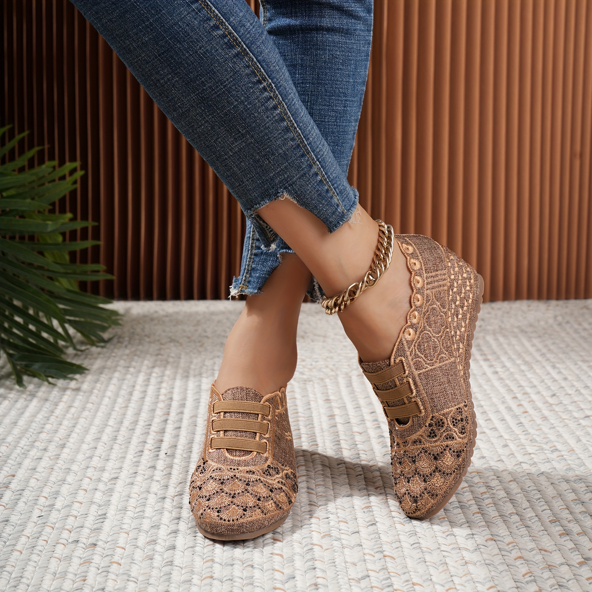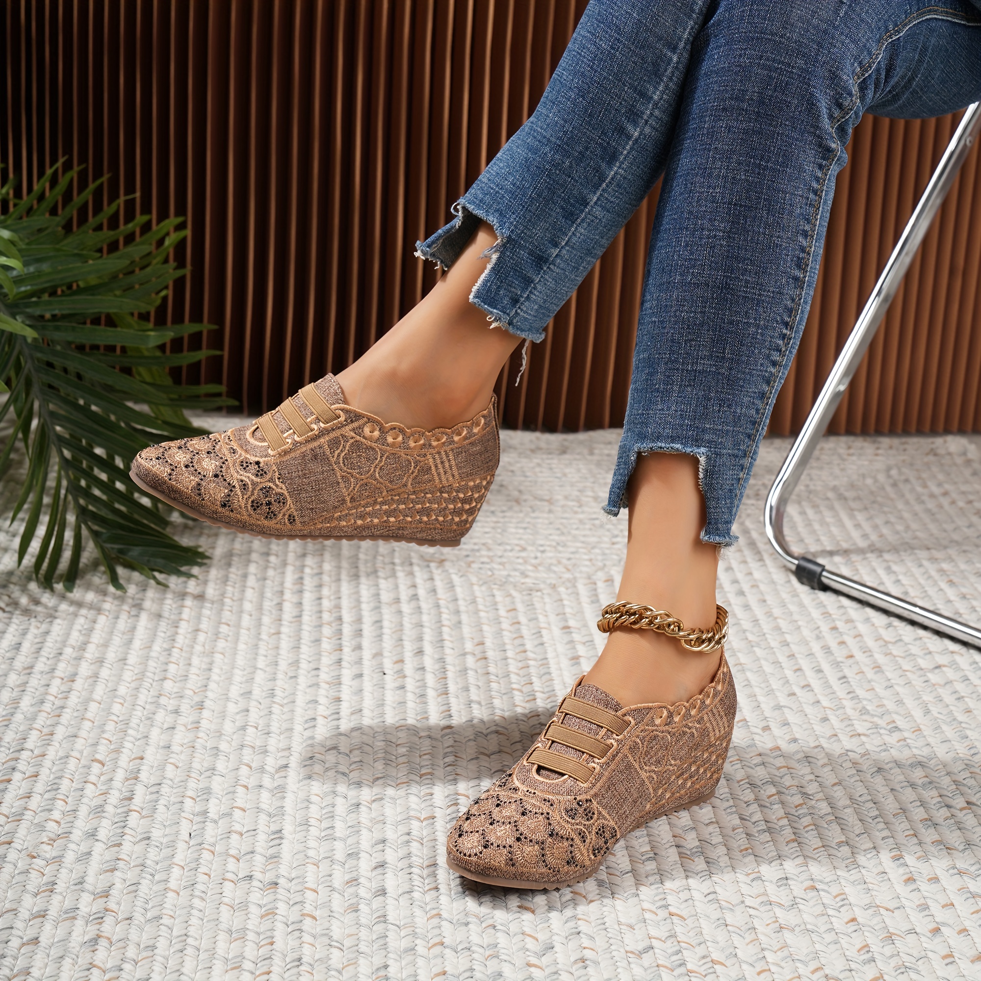 Women's Rhinestone Decor Wedge Shoes, Comfy Knitted Height Increasing Shoes, Slip On Soft Walking Shoes
