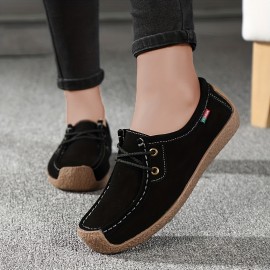 Women's Suedette Flat Loafers, Solid Color Slip On Buckle Decor Half Drag Shoes, Light & Comfy Shoes