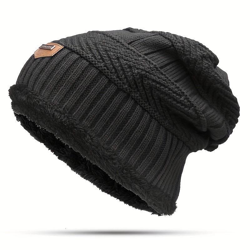Classic Unisex Fleece Beanie Thick Coldproof Ear Warmer Knit Hat Elastic Solid Color Beanies Winter Ski Hats For Women & Men