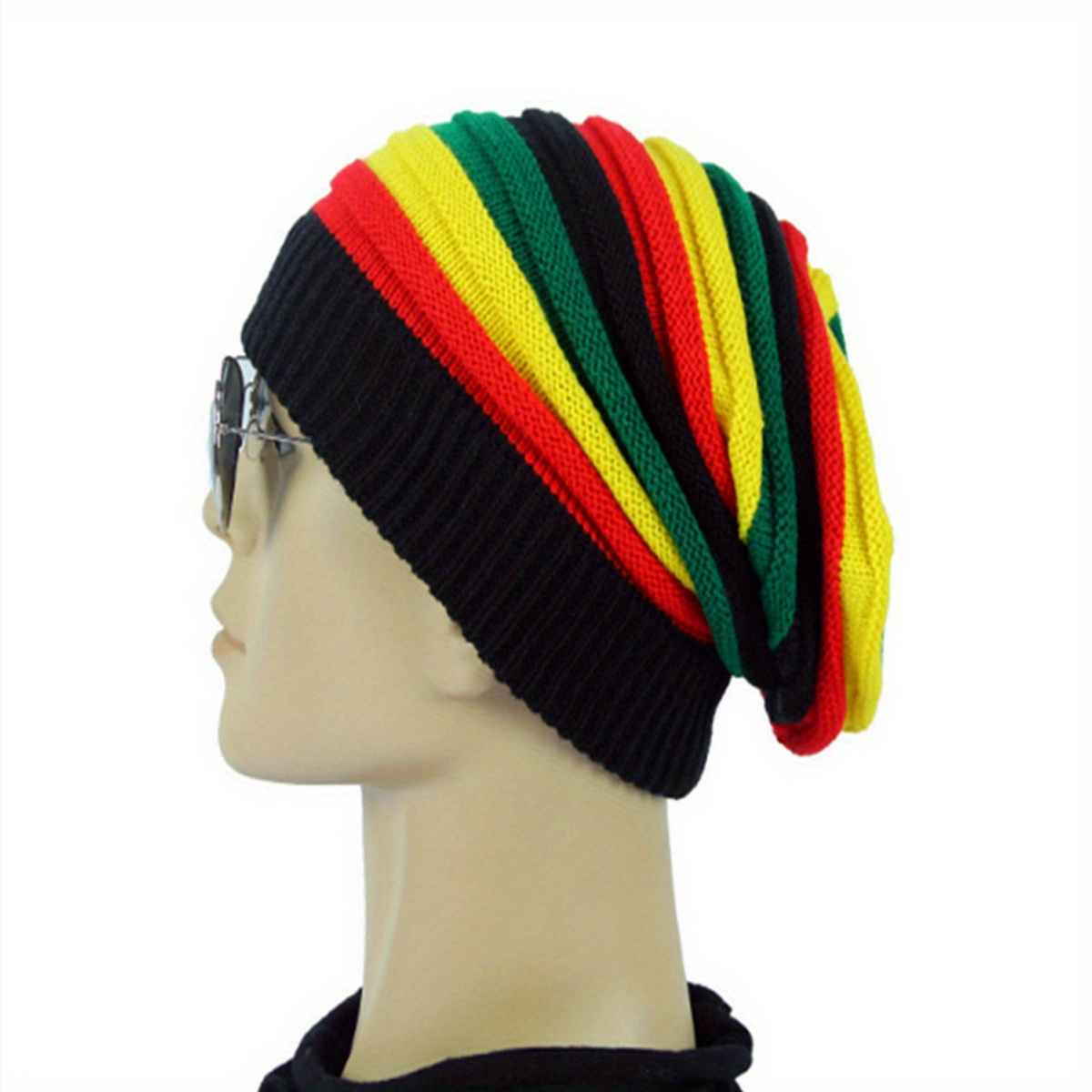 Multicolour Knit Beanie Rainbow Striped Oversize Baggy Hat Slouch Cap Unisex Coldproof Ski Hats For Men Women Winter